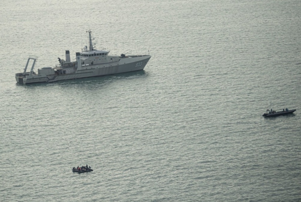 KRI Rigel-933 melakukan pencarian korban dan puing pesawat Sriwijaya Air SJ 182 di perairan Kepulauan Seribu, Jakarta, Minggu (10/1). Foto: Aditya Pradana Putra/ANTARA FOTO