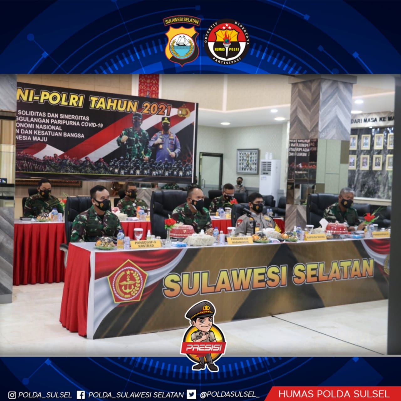 Saat memberikan keterangannya terkait kegiatan Rapim ini, Kabid Humas Polda Sulsel Kombes Pol E. Zulpan menyampaikan rapim TNI Polri tahun 2021 ini dilakukan secara virtual oleh 15 Pangdam dan 34 Kapolda di seluruh Indonesia. Adapun hal yang dibahas salah satunya terkait strategi TNI-Polri dalam penanganan penyebaran virus Corona atau Covid-19.