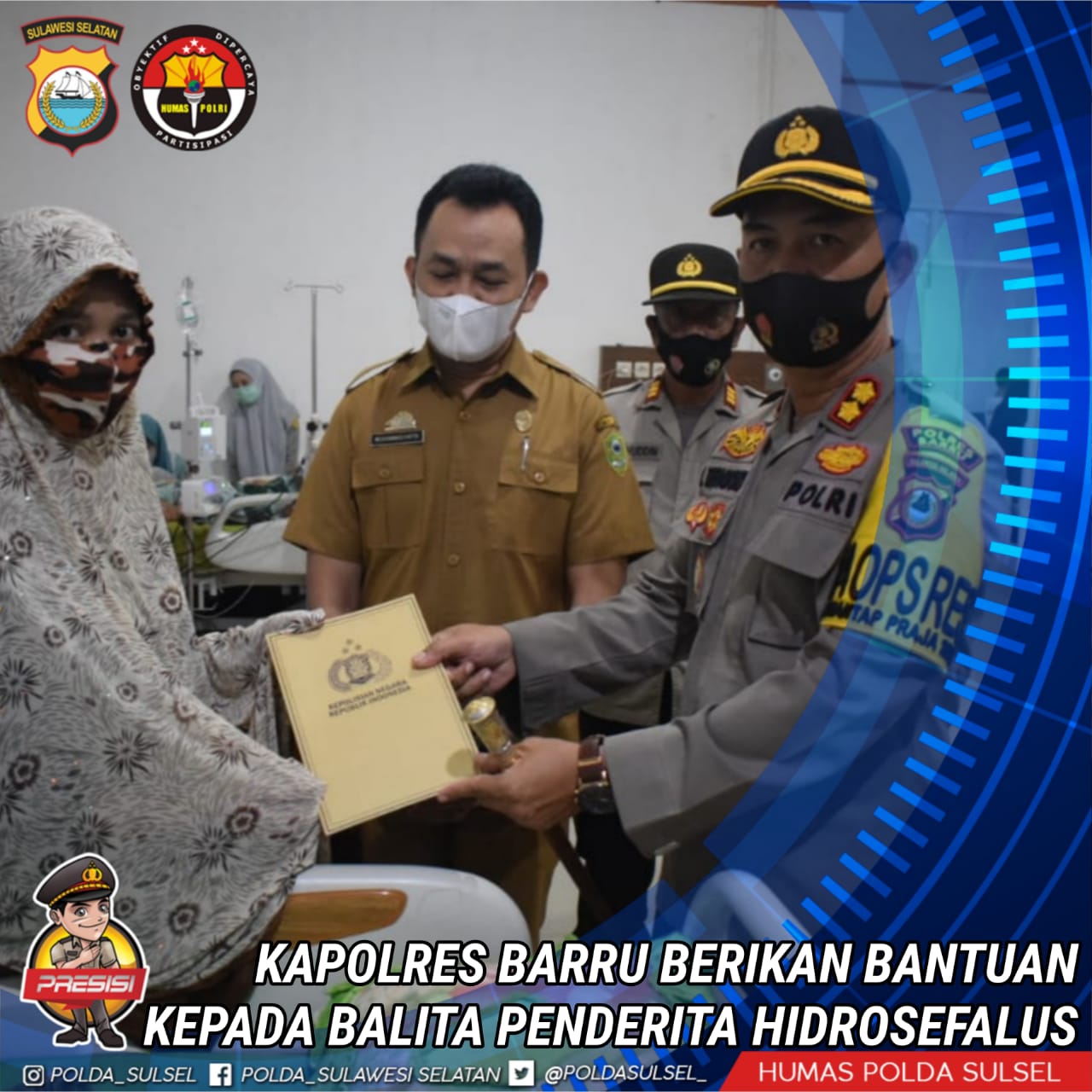 “Saya mengucapkan terima kasih yang sebesar besarnya khususnya kepada Bapak Kapolres dan istri serta kepada seluruh jajaran Polres Barru yang telah mengunjungi kami dan membantu biaya pengobatan anak kami,” ucap Ibu dari balita tersebut.