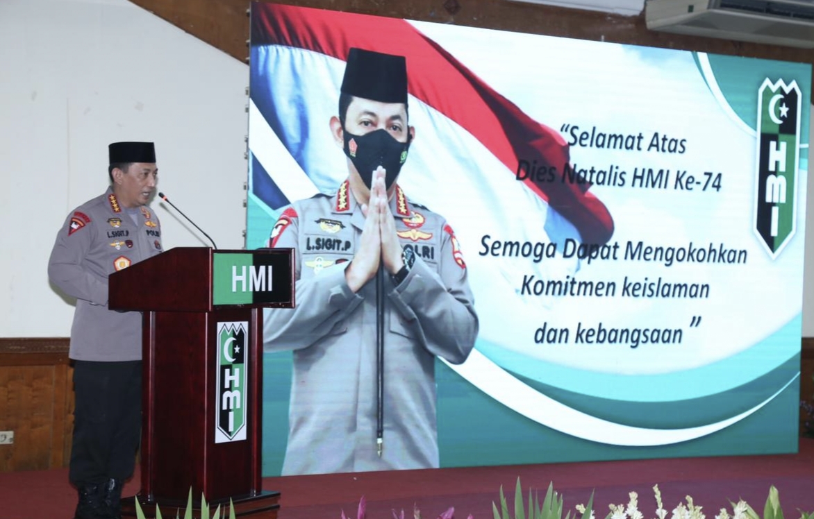 JAKARTA, KLUPAS.COM – Kapolri Jenderal Polisi Listyo Sigit Prabowo menghadiri puncak acara Dies Natalis HMI ke-74 yang digelar di Aula Masjid Sunda Kelapa, Jakarta Pusat, Kamis malam (18/2/2021).