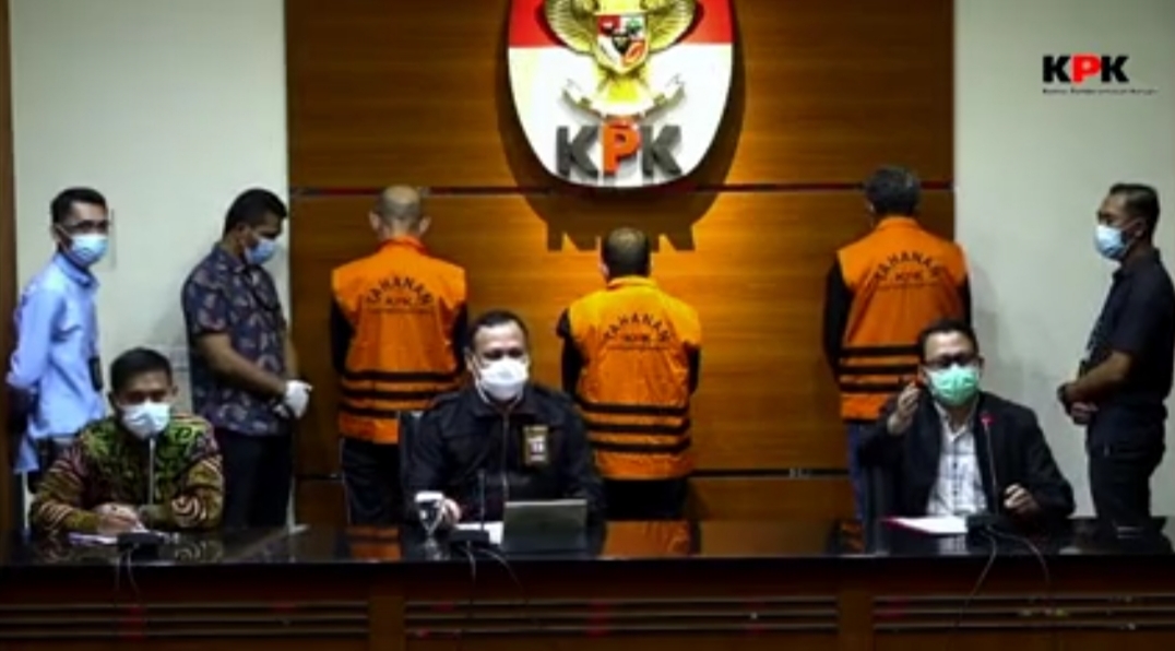 Dalam konferensi pers di Gedung KPK RI, Jakarta, Minggu dinihari (28/2/2021), Ketua KPK RI Firli Bahuri menegaskan, berdasarkan keterangan para saksi dan bukti yang cukup, maka KPK berkeyakinan bahwa tersangka dalam perkara ini sebanyak 3 orang, yakni Gubernur Sulawesi Selatan Nurdin Abdullah, Sekretaris Dinas PU Provinsi Sulsel Edy Rahmat, dan pihak swasta Agung Sucipto. Ketiga tersangka nampak mengenakan rompi oranye KPK.