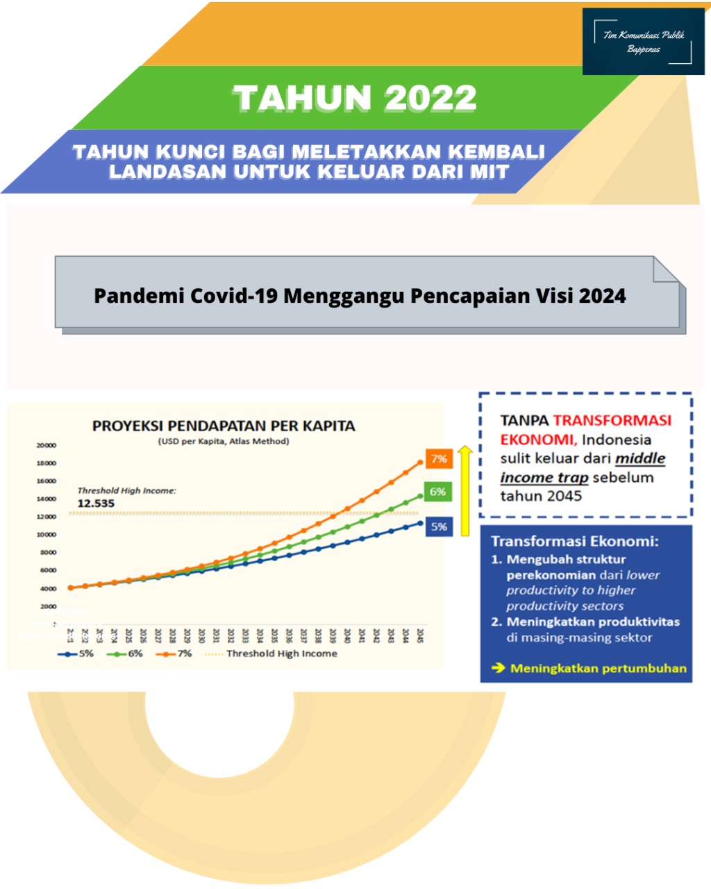 Menteri PPN/Kepala Bappenas, Suharso Monoarfa, Sabtu 6 Februari 2021 mengungkapkan beberapa hal yang menjadi pertimbangan dalam menentukan arah kebijakan fiskal, yaitu: Pertama, tahun 2022 merupakan momentum untuk ekonomi tumbuh tinggi serta segala daya upaya akan dikerahkan untuk pencapaiannya.