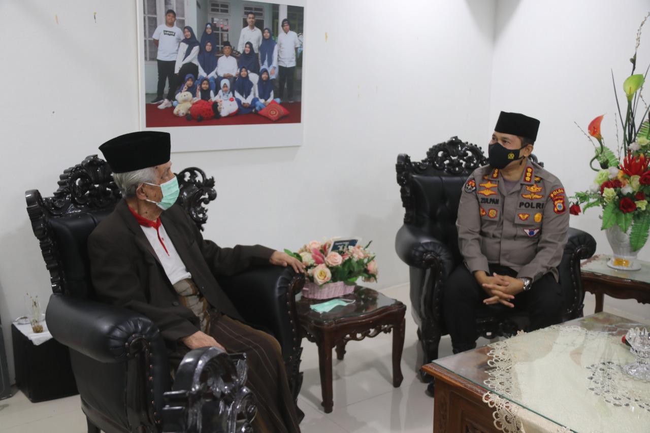 MAKASSAR, KLUPAS.COM – Kabid Humas Polda Sulsel Kombes Pol E. Zulpan bersilaturahmi ke Ketua Majelis Ulama Indonesia (MUI) Sulawesi Selatan Anre Gurutta (AGH) Kyai Haji Sanusi Baco, di Jalan Kelapa Tiga, Makassar, Selasa (23/2/2021).
