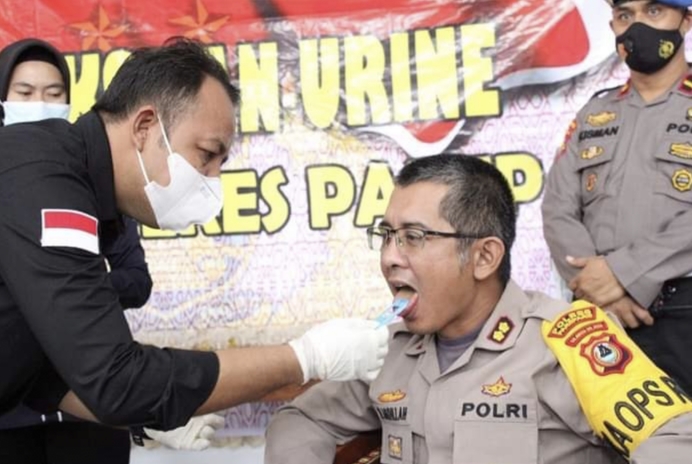 Selain dilakukan tes urine bagi seluruh Personil, tes narkoba juga dilakukan dengan metode terbaru menggunakan DrugWipe Test atau pemeriksaan lewat air liur.