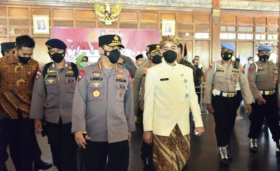 SOLO, KLUPAS.COM – Kapolri Jenderal Polisi Listyo Sigit Prabowo terus memantau kelancaran program vaksinasi nasional. Kali ini, Jenderal bintang empat itu bergerak ke Kota Solo, Provinsi Jawa Tengah. Bersama Wali Kota Solo Gibran Rakabuming, Kapolri memantau langsung proses jalannya vaksinasi di Pendapi Gede atau Balaikota Surakarta.