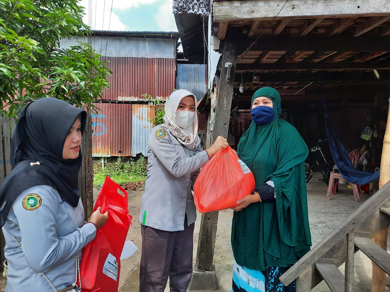 Notaris dan PPAT se-Ajatappareng menyusuri lorong demi lorong, di tengah terik matahari untuk membagikan sembako ke warga miskin.