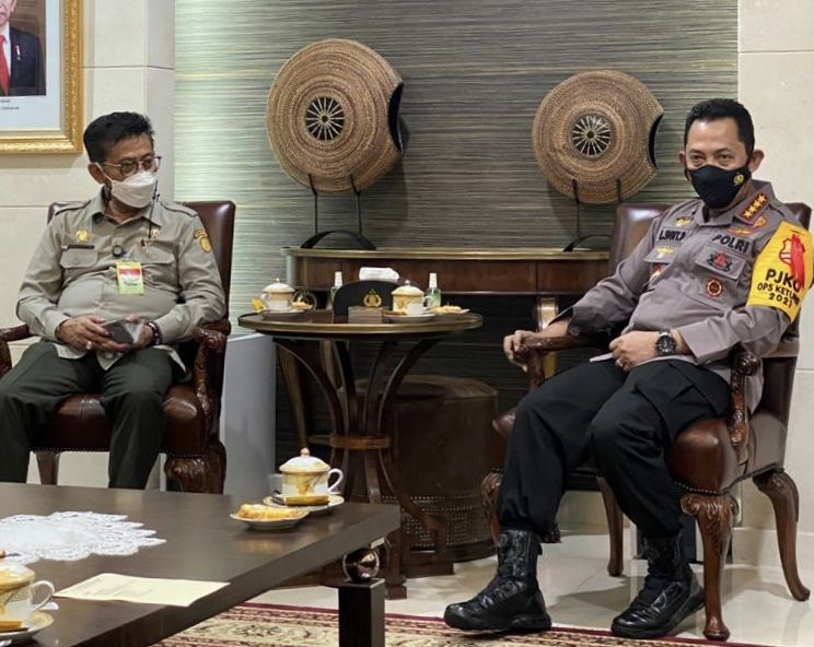 JAKARTA, KLUPAS.COM – Kapolri Jenderal Polisi Listyo Sigit Prabowo menerima audiensi Menteri Pertanian Syahrul Yasin Limpo bersama jajaran, di Ruang Rapat Kapolri, Mabes Polri, Jakarta, Senin (17/5/2021).