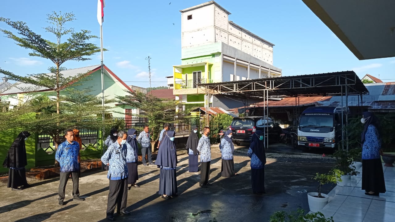 Pertama kalinya penggunaan seragam batik serentak Korps Pegawai Republik Indonesia dimasa pandemi COVID-19 lingkup Disdalduk-KB Enrekang, pelaksanaan apel dengan tetap menerapkan protokol kesehatan COVID-19. (*)