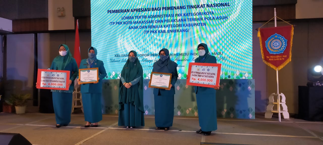MAKASSAR, KLUPAS.COM – TP-PKK Enrekang mendapatkan penghargaan pada Hari Kesatuan Gerak (HKG) dan Rapat Kerja Daerah (Rakerda) PKK Sulsel. Acara itu berlangsung di Hotel Fourpoint by Sheraton, Jl Andi Djemma Kota Makassar, Rabu (2/6/2021).