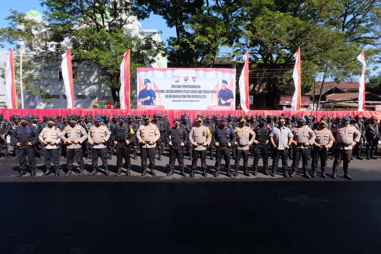 Sebanyak 201 personel Satuan Brimob Polda Sulsel melaksanakan Bawah Kendali Operasi (BKO) Polda Papua dalam rangka pengamanan PON ke-XX di Papua.
