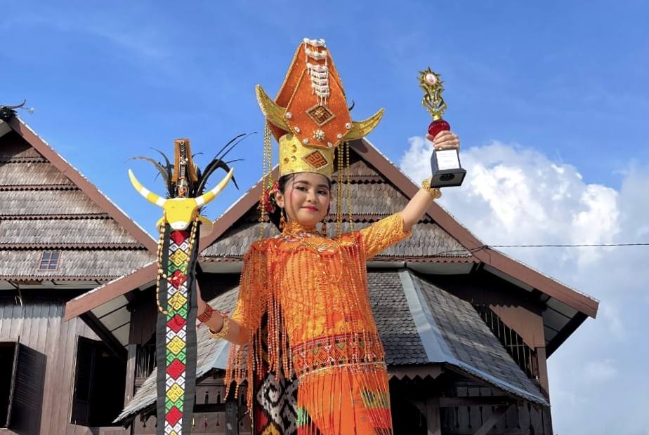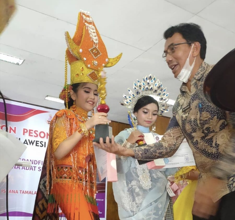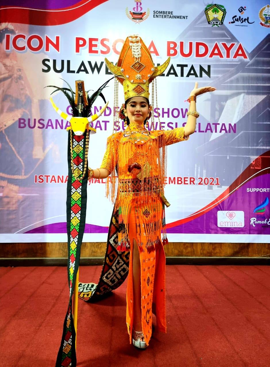 Pada Grand Final Show Busana Adat Sulawesi Selatan, siswi kelas 5 SDN 3 Kota Parepare ini tampil begitu mempesona dan penuh percaya diri dengan Pakaian Adat Toraja.