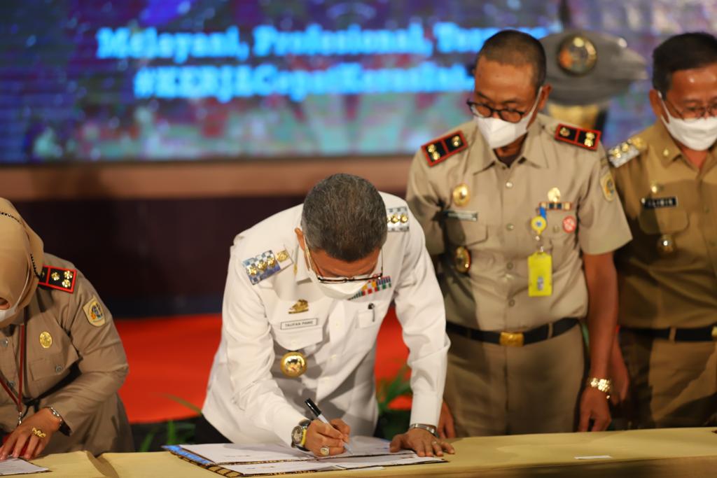 Penandatangan ini dihadiri langsung Menteri Agraria dan Tata Ruang RI, Sofyan A Djalil. Kegiatan ini dirangkaikan penyerahan sertifikat tanah untuk rakyat.