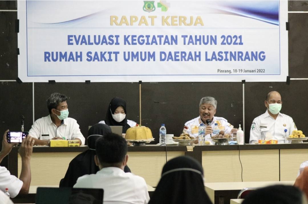 PINRANG, KLUPAS.COM – Bupati Pinrang Irwan Hamid mengapresiasi jajaran Rumah Sakit Umum Daerah (RSUD) Lasinrang yang melaksanakan rapat kerja (Raker) evaluasi kegiatan tahun 2021, Rabu 19 Januari 2022.