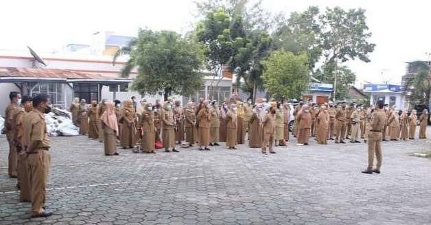 Apel pagi itu digelar dengan tetap mematuhi protokol kesehatan yang ketat. Semua peserta apel, wajib memakai masker.