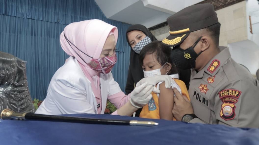 PAREPARE, KLUPAS.COM – Tingginya antusias anak mengikuti vaksinasi pada usia 6-11 tahun di Gedung Baruga Pratista Polres Parepare, Sulawesi Selatan, membuat Ketua Bhayangkari Parepare, dr. Lioni Andiko, yang juga Istri Kapolres Parepare, AKBP Andiko Wicaksono, berharap tidak ada KIPI usai vaksin yang dilakukan.