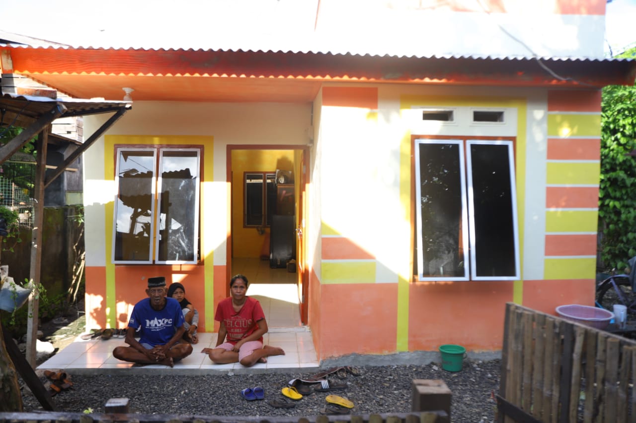 “Tidak pernah terpikirkan pak rumah saya seperti ini. Suamiku kerjanya cuma bantu-bantu orang di Pasar Senggol. Dulu kalau hujan bocor-bocor pak. Apalagi kencang angin, terbang pasti sengku. Sekarang tidak adami begitu saya rasakan rumahku pak. Senang semua anak-anakku begini mi rumahnya,” kata Umiati.