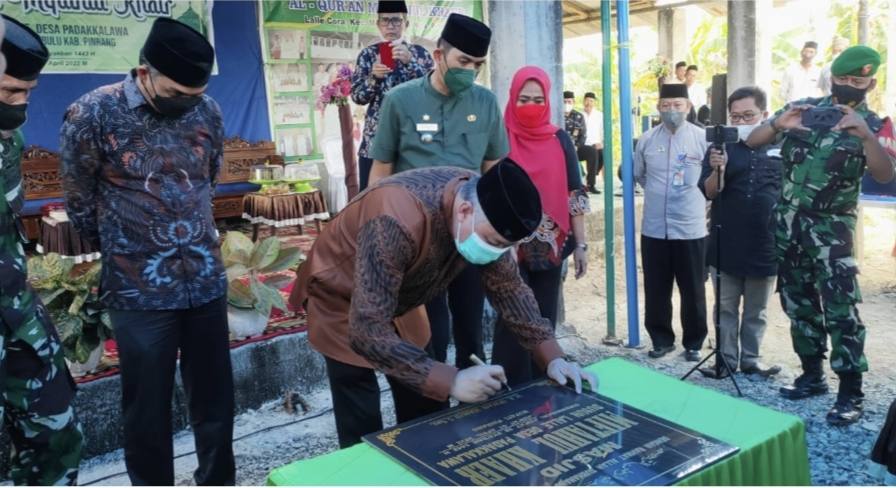PINRANG, KLUPAS.COM – Bupati Pinrang Irwan Hamid menandatangani prasasti Perubahan status Mushalla Miftahul Khair menjadi Masjid Miftahul Khair, di Dusun Lalle, Desa Padakkalawa, Kecamatan Mattiro Bulu, Kabupaten Pinrang, Jumat 1 April 2022.