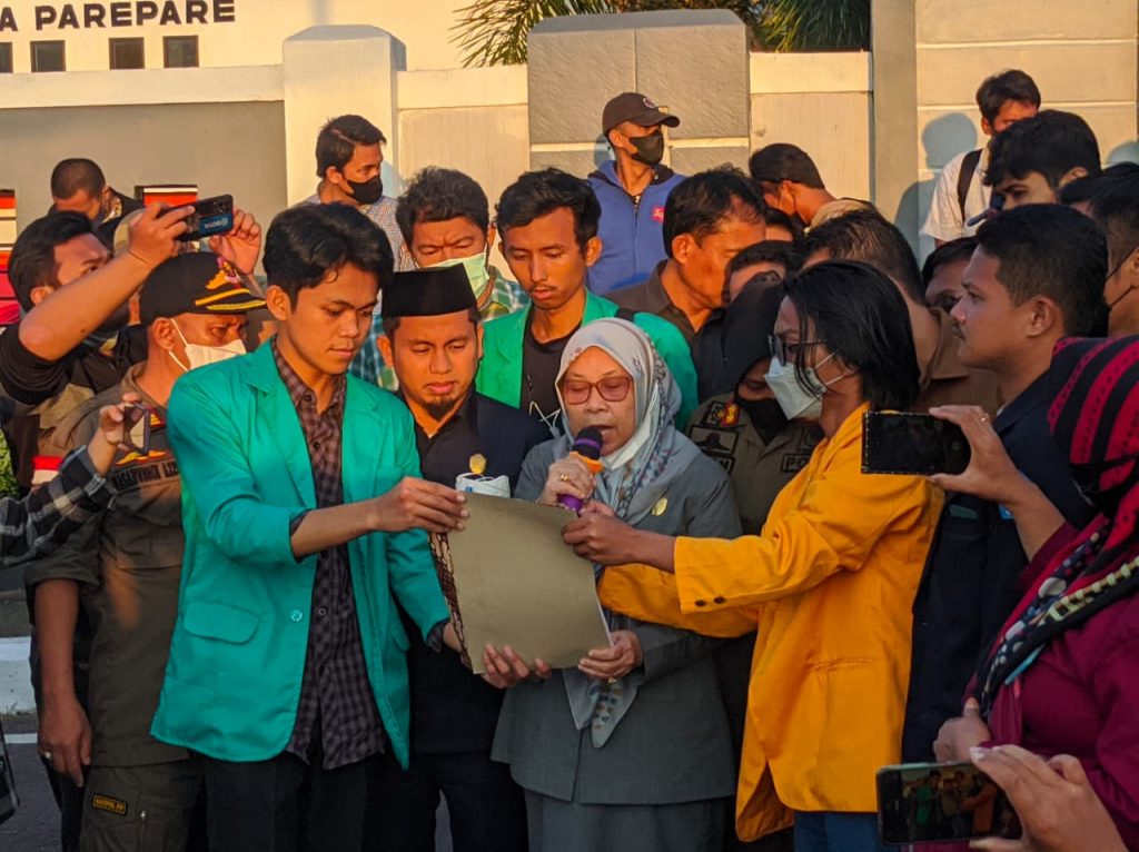 Setelah menyampaikan aspirasi, mahasiswa diterima ke dalam ruang rapat paripurna DPRD Parepare. Hasilnya, DPRD menyepakati semua tuntutan mahasiswa.