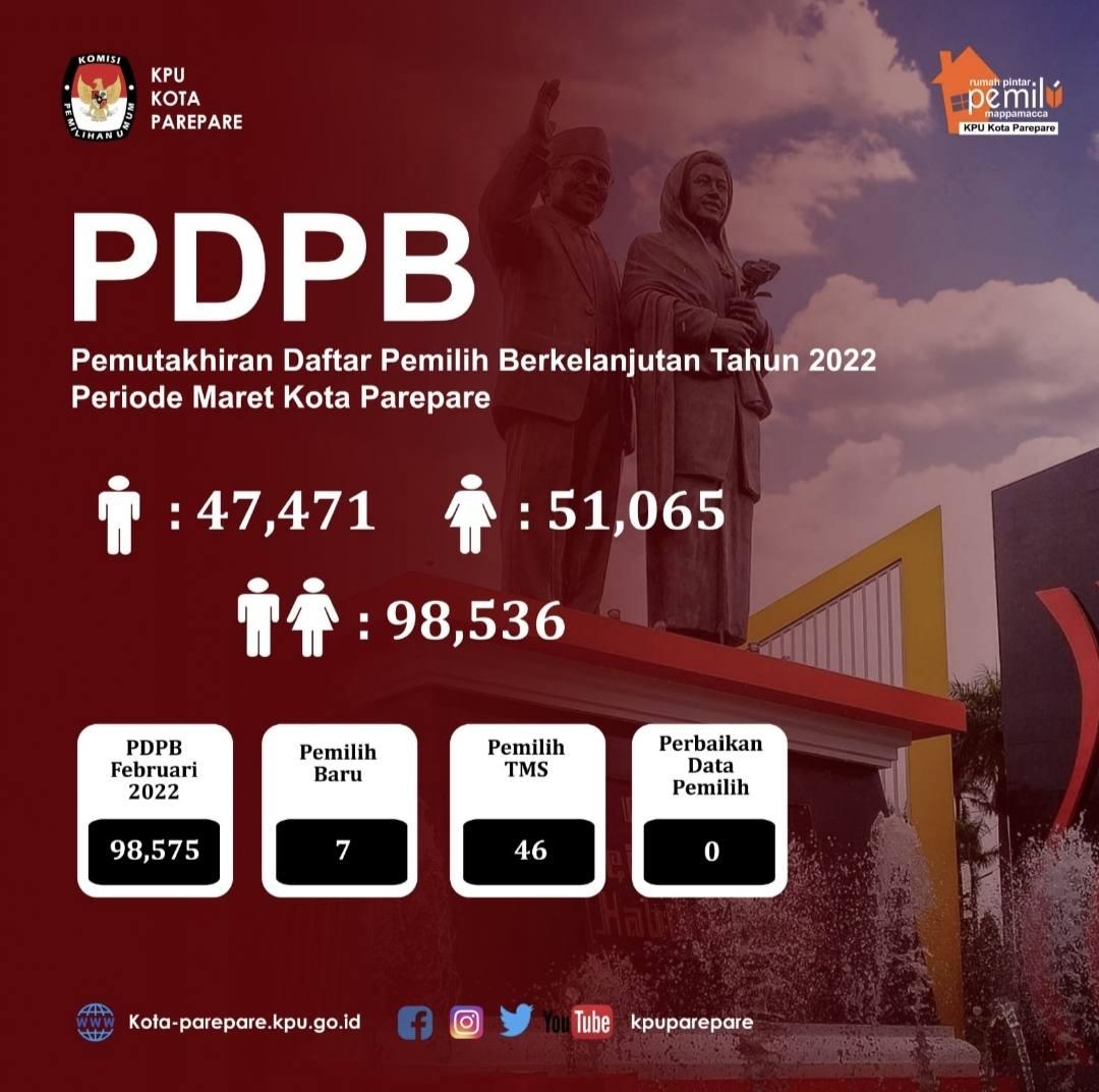 “Dan bila diperlukan dapat diverifikasi secara faktual sebelum dimasukkan sebagai capaian kegiatan pemutakhiran pada bulan berjalan serta pada sisi lain jumlah pemilih Tidak Memenuhi Syarat (TMS), baik yang terkonfirmasi telah meninggal dunia maupun penduduk Kota Parepare yang telah pindah keluar dan menjadi penduduk kabupaten/kota lain menunjukkan trend yang cukup meningkat setidaknya dalam kurun waktu 2 (dua) bulan terakhir,” urainya.