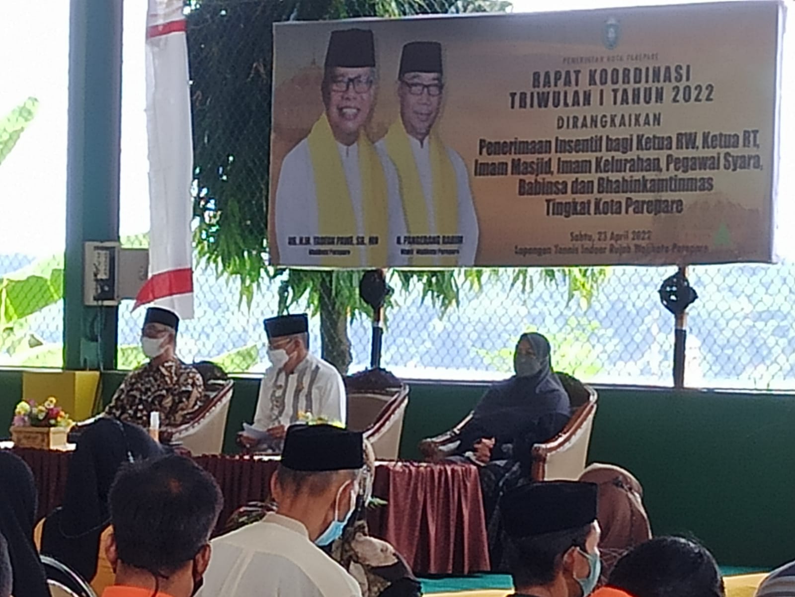 PAREPARE, KLUPAS.COM – Wali Kota Parepare Taufan Pawe memberikan arahan pada kegiatan Rapat Koordinasi Triwulan I Tahun 2022 sekaligus menyerahkan secara simbolis insentif bagi ketua RW, ketua RT, Imam Masjid, Imam Kelurahan, Pegawai Syara, Babinsa, dan Bhabinkamtibmas tingkat Kota Parepare. Kegiatan itu berlangsung di Lapangan Tenis Rumah Jabatan Walikota Parepare, Sabtu 23 April 2022.