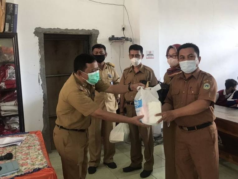 Sekretaris Dinas Kesehatan Parepare, M Idris mewakili Kepala Dinas Kesehatan, dan Kepala Bidang Pendidikan Dasar Disdikbud Parepare, Widin Wijaya mewakili Kepala Disdikbud, menyerahkan masker di sekolah yang menjadi perwakilan di setiap Kecamatan.