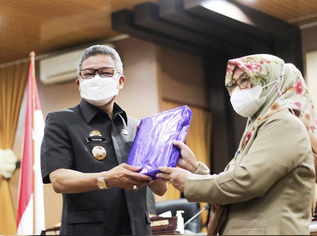 Ranperda ABPD Tahun Anggaran 2021 diserahkan oleh Wali Kota Parepare Taufan Pawe kepada Ketua DPRD Parepare Andi Nurhatina Tipu, dalam rapat paripurna yang digelar di Ruang Paripurna Lantai II Gedung DPRD Kota Parepare, Senin, 4 Juli 2022.