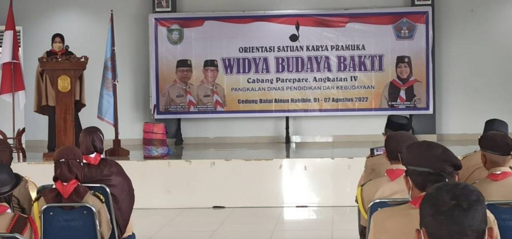 PAREPARE, KLUPAS.COM – Ketua Kwarcab Pramuka Parepare, Erna Rasyid Taufan, menghadiri Orientasi Satuan Karya Pramuka Widya Budaya Bakti Cabang Parepare Angkatan IV, di Balai Ainun, Senin, 1 Agustus 2022.