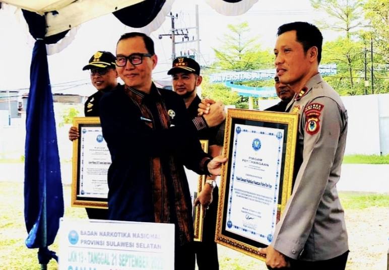 Penghargaan itu diserahkan langsung Kepala Badan Narkotika Nasional Provinsi (BNNP) Sulawesi Selatan, Brigjen Pol Ghiri Prawijaya di Kantor BNN Provinsi Sulsel, Kamis, 29 September 2022.