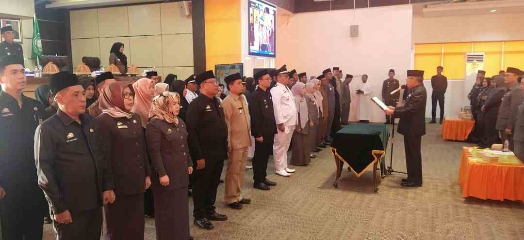 Pelantikan dan Pengambilan Sumpah Pejabat Administrator, Pejabat Pengawas dan Pejabat Fungsional berlangsung di Auditorium BJ Habibie, Rujab Walikota Parepare, Jumat 25 Agustus 2023.