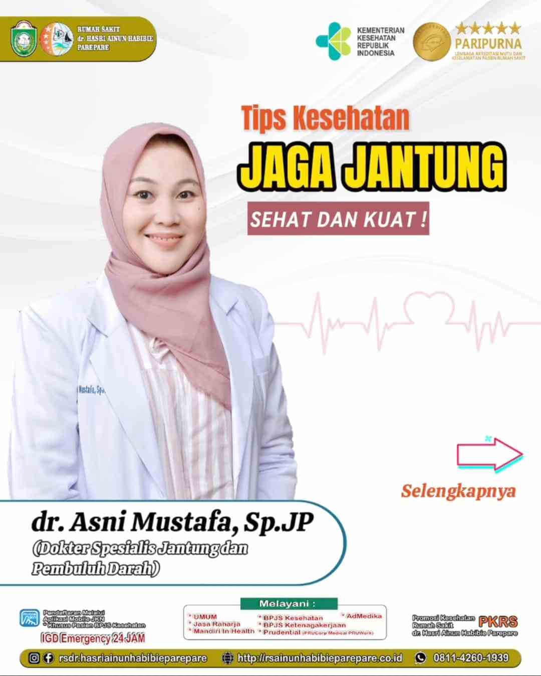 PAREPARE, KLUPAS.COM – Dokter Spesialis Jantung dan Pembuluh Darah Rumah Sakit dr. Hasri Ainun Habibie (RS HAH) Kota Parepare, dr. Asni Mustafa, Sp.JP berbagi kiat pentingnya menjaga kesehatan jantung.