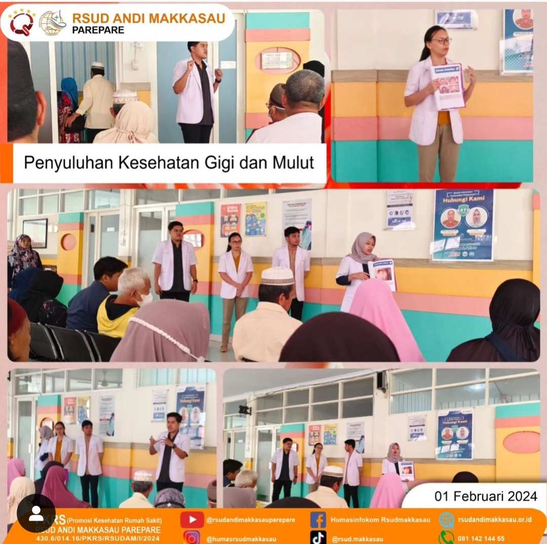 PAREPARE, KLUPAS.COM – Dokter Gigi Internship RSUD Andi Makkasau Kota Parepare, kembali menyelenggarakan penyuluhan di ruang tunggu instalasi rawat jalan RSUD, Kamis 1 Februari 2024.