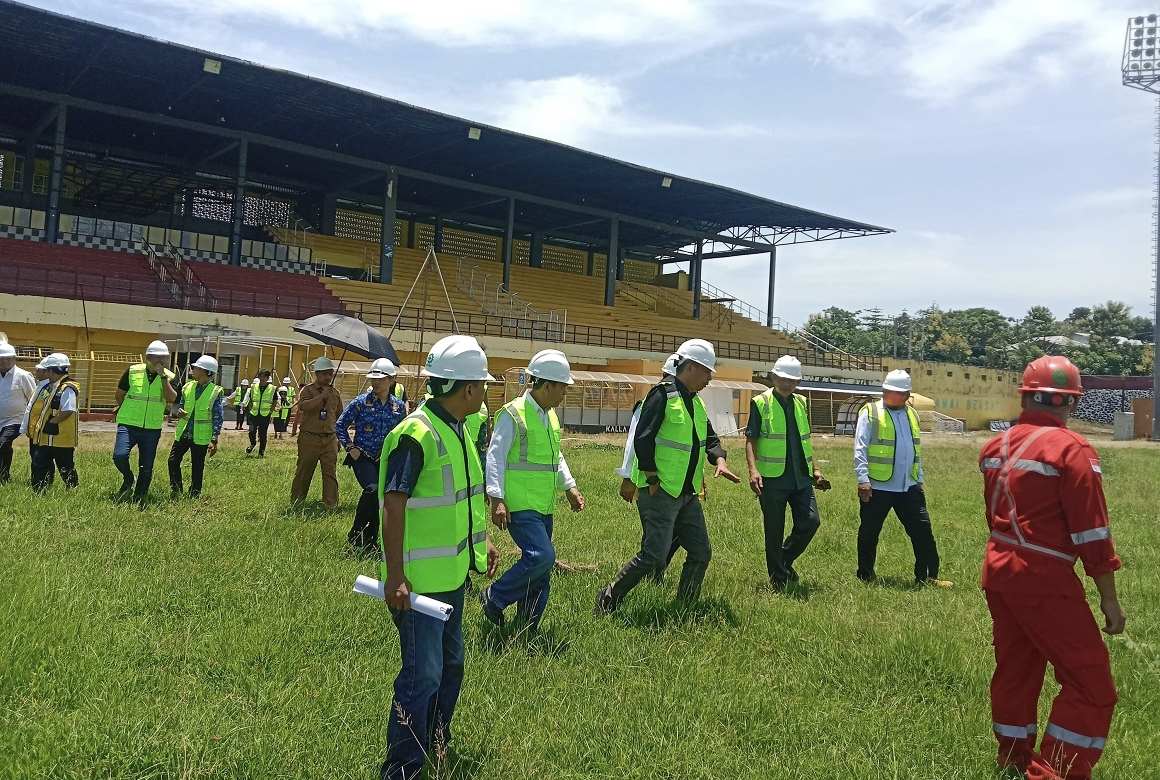 Kepala Balai Prasarana Permukiman Wilayah Sulsel Kusworo Darpito dalam peninjauan itu menjelaskan bagian-bagian stadion yang akan direnovasi. Yang utama adalah penataan lapangan.