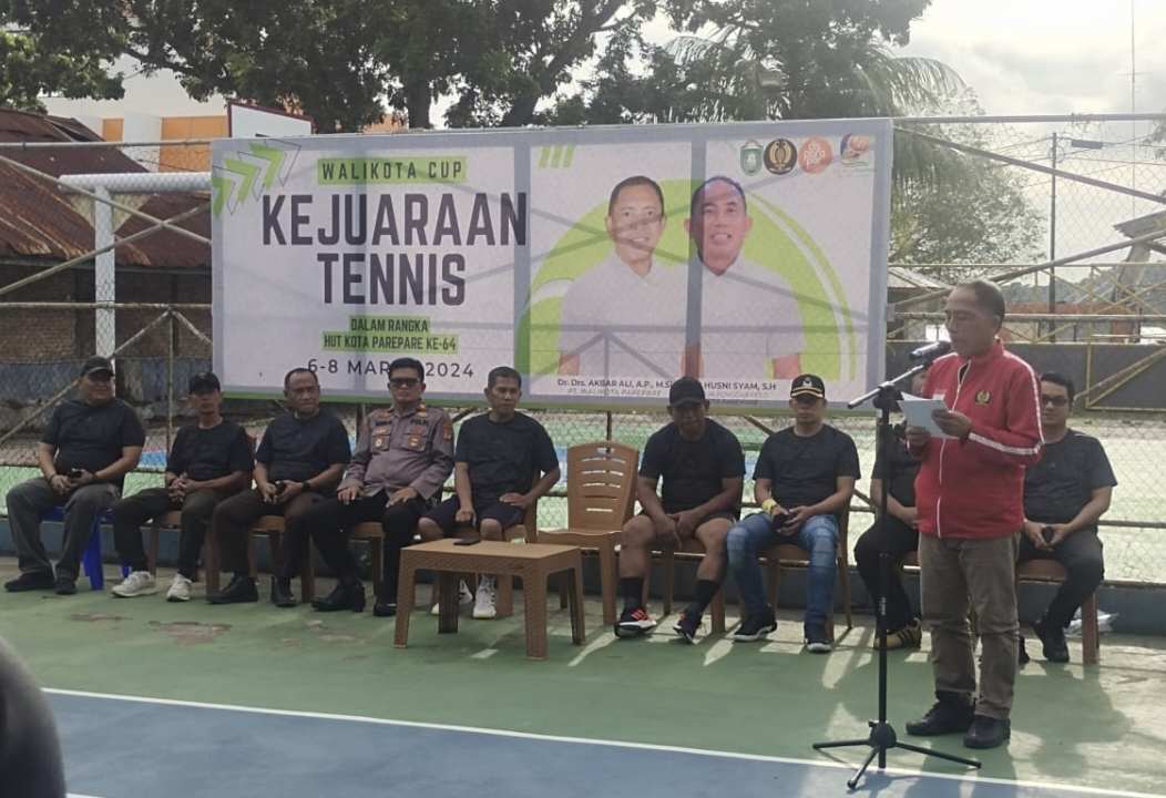 Kejuaraan Tennis Wali Kota Cup resmi dibuka oleh Sekda Parepare Muhammad Husni Syam mewakili Penjabat (Pj) Wali Kota Parepare Akbar Ali, dengan melakukan pemukulan bola tenis di Lapangan Tennis Pelti, Jati Diri, Jalan Sultan Hasanuddin, Parepare, Rabu 6 Maret 2024.