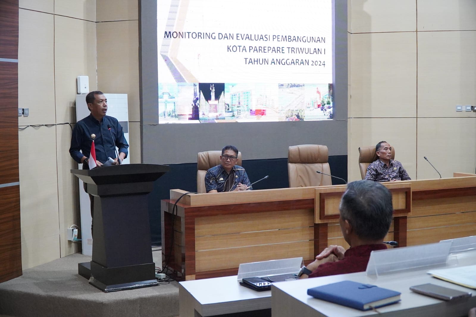 Monitoring dan Evaluasi (Monev) dibuka resmi Penjabat (Pj) Wali Kota Parepare, Akbar Ali di Ruang Pola Kantor Wali Kota Parepare, Jumat 5 April 2024.