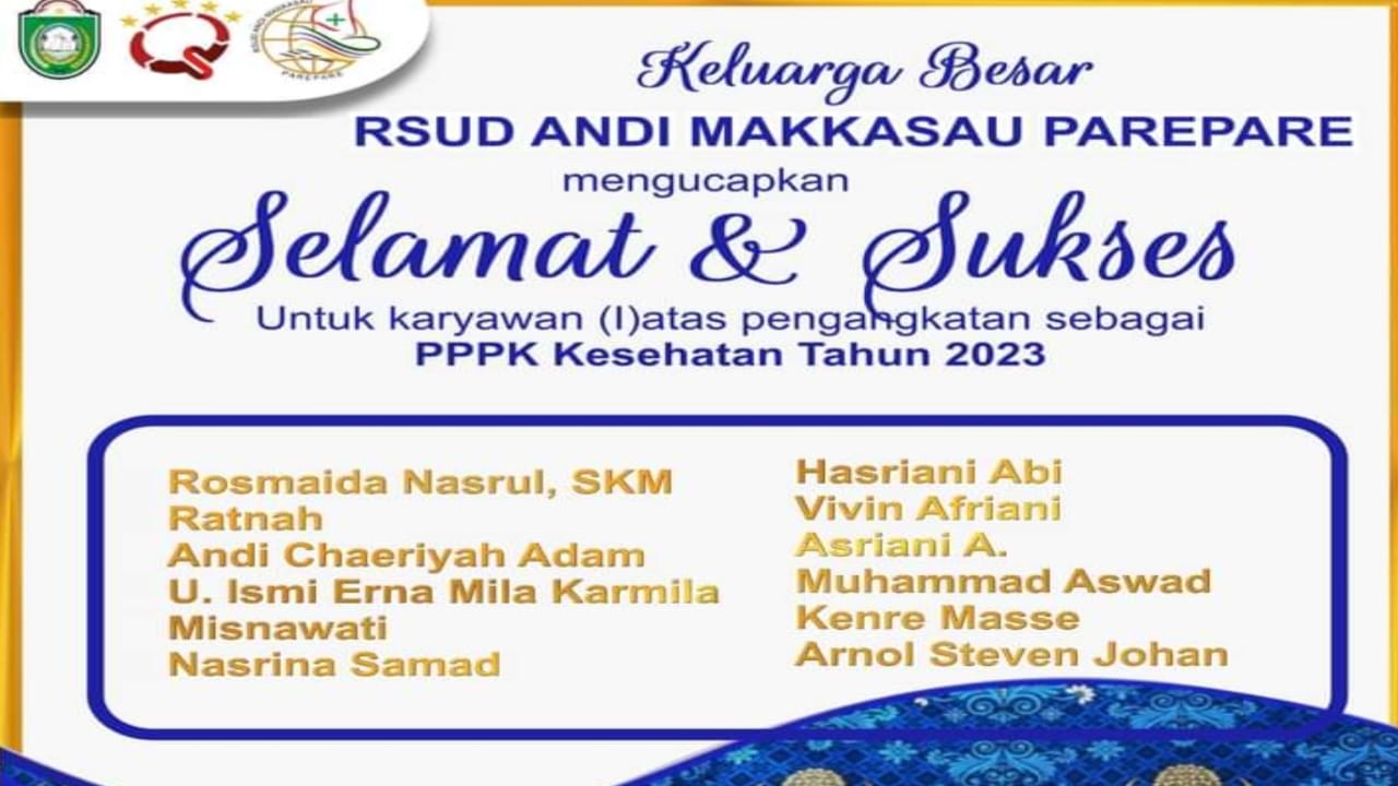 “Selamat dan sukses atas pengangkatan sebagai PPPK Kesehatan Tahun 2023. Semoga amanah mengemban tugas negara,” tulis RSUD Andi Makkasau.