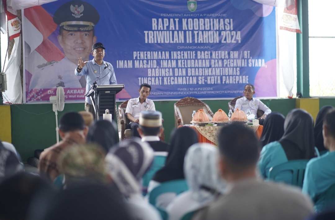 PAREPARE, KLUPAS.COM – Pemerintah Kota Parepare kembali menyerahkan insentif triwulan II 2024 kepada Ketua RW/RT, Babinsa, Bhabinkamtibmas, Imam Masjid, Imam Kelurahan, dan Pegawai Syara di lapangan tenis indoor, Rumah Jabatan Wali Kota Parepare, Rabu 12 Juni 2024.