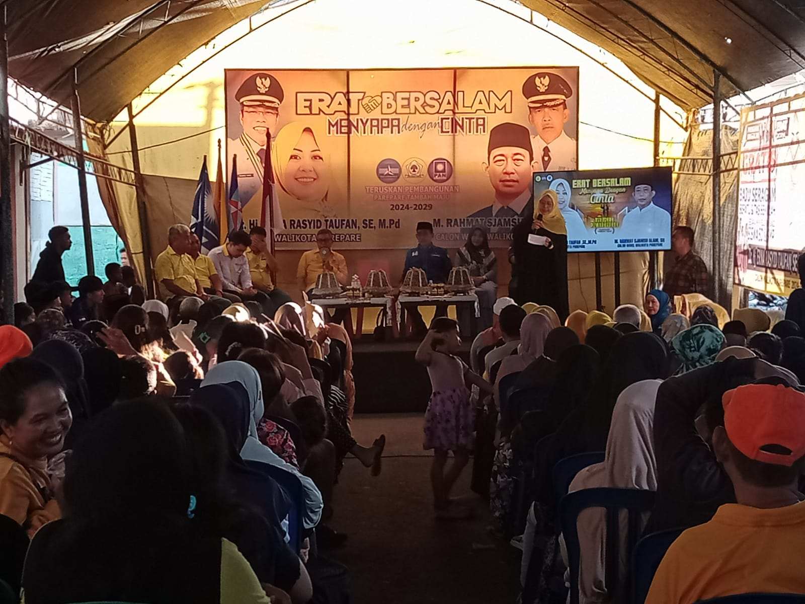 Sekira 850 warga hadir pada sosialisasi yang dikemas dalam Program Erat Bersalam Menyapa dengan Cinta. Sosialisasi turut dihadiri Ketua DPD I Partai Golkar Sulsel Taufan Pawe, Wali Kota Parepare dua periode (2013-2023) sekaligus Anggota DPR RI terpilih periode 2024-2029.