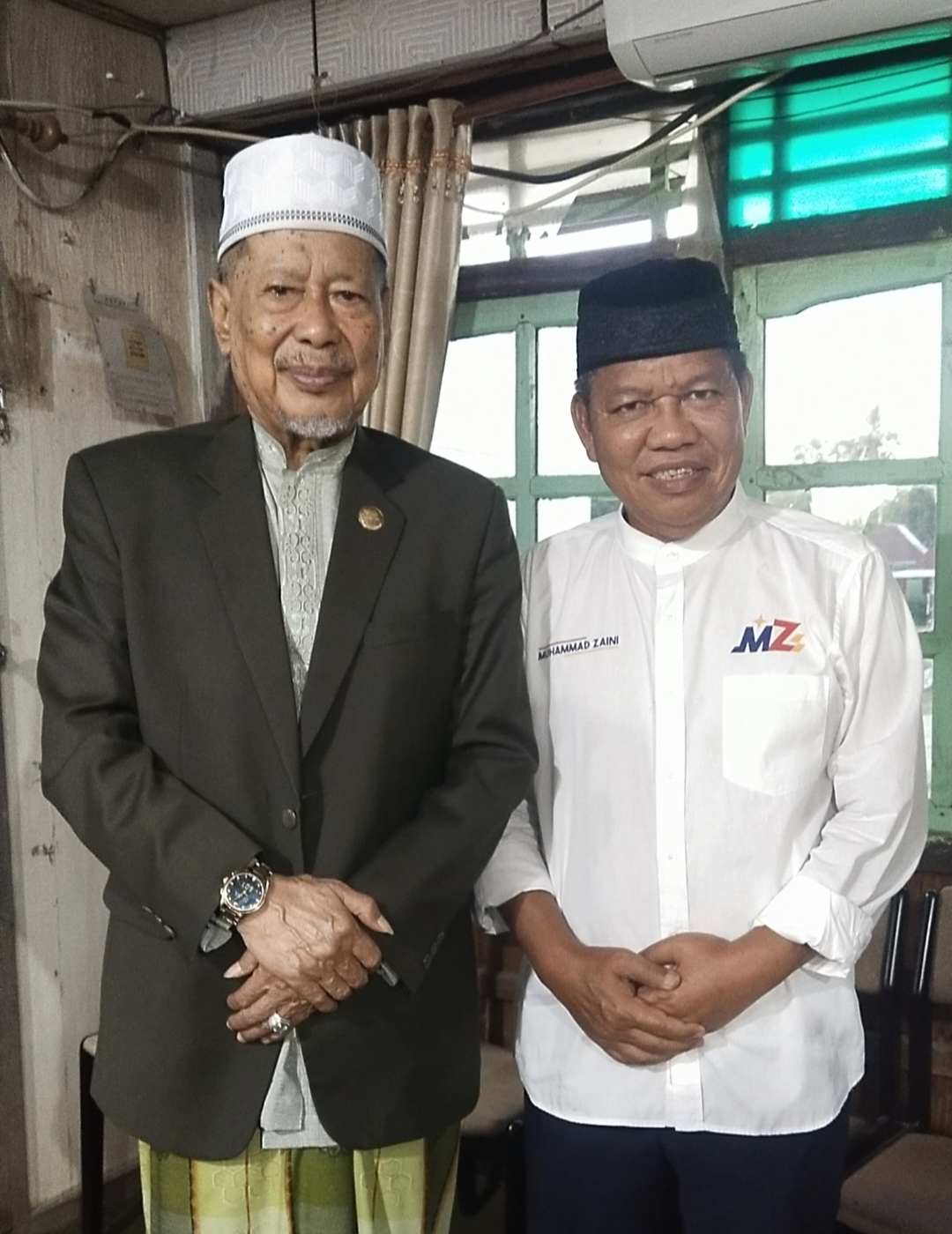 MZ meminta restu dan mohon perkenaan doa langsung dari AG KH Farid Wajdi sebagai wasilah keberkahan dunia akhirat.