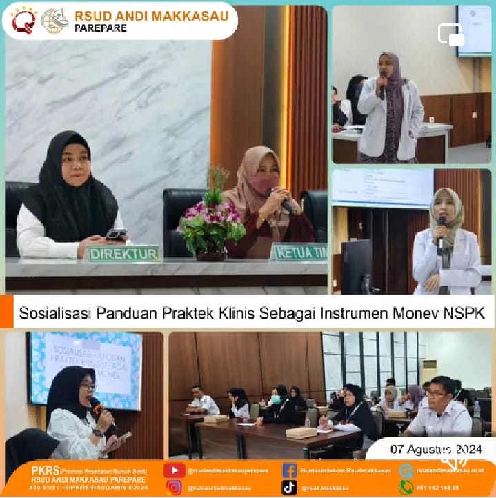 PAREPARE, KLUPAS.COM – Rumah Sakit Umum Daerah (RSUD) Andi Makkasau Kota Parepare melaksanakan sosialisasi panduan praktik klinis sebagai instrumen monev NSPK.