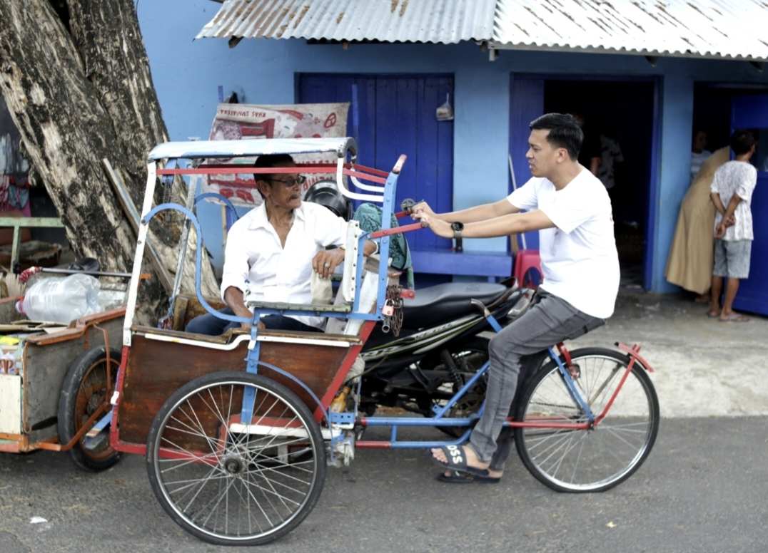 Dalam momen yang penuh kehangatan itu, Andi Nurhaldin terlihat berbincang santai dengan tukang becak yang sudah lanjut usia tersebut.