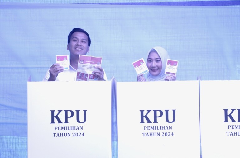 Setelah melalui proses verifikasi, ANH bersama istri menggunakan hak pilihnya dengan tertib sesuai aturan.