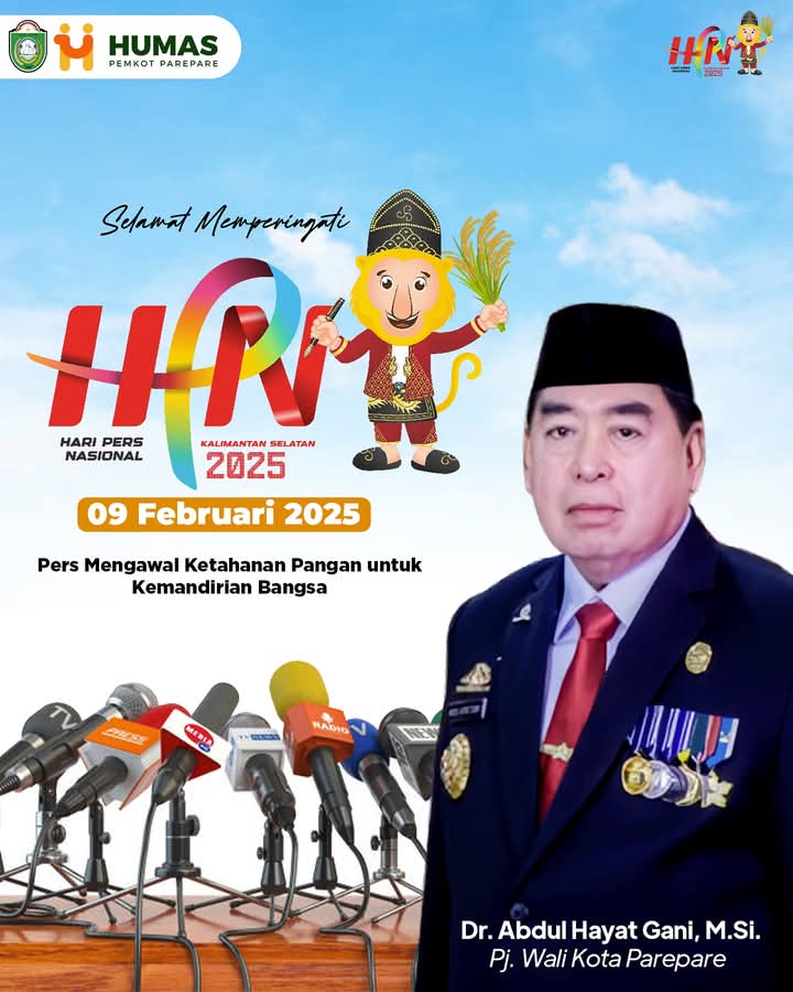 PAREPARE, KLUPAS.COM – Penjabat Wali Kota Parepare, Abdul Hayat Gani mengucapkan selamat Hari Pers Nasional 2025.
