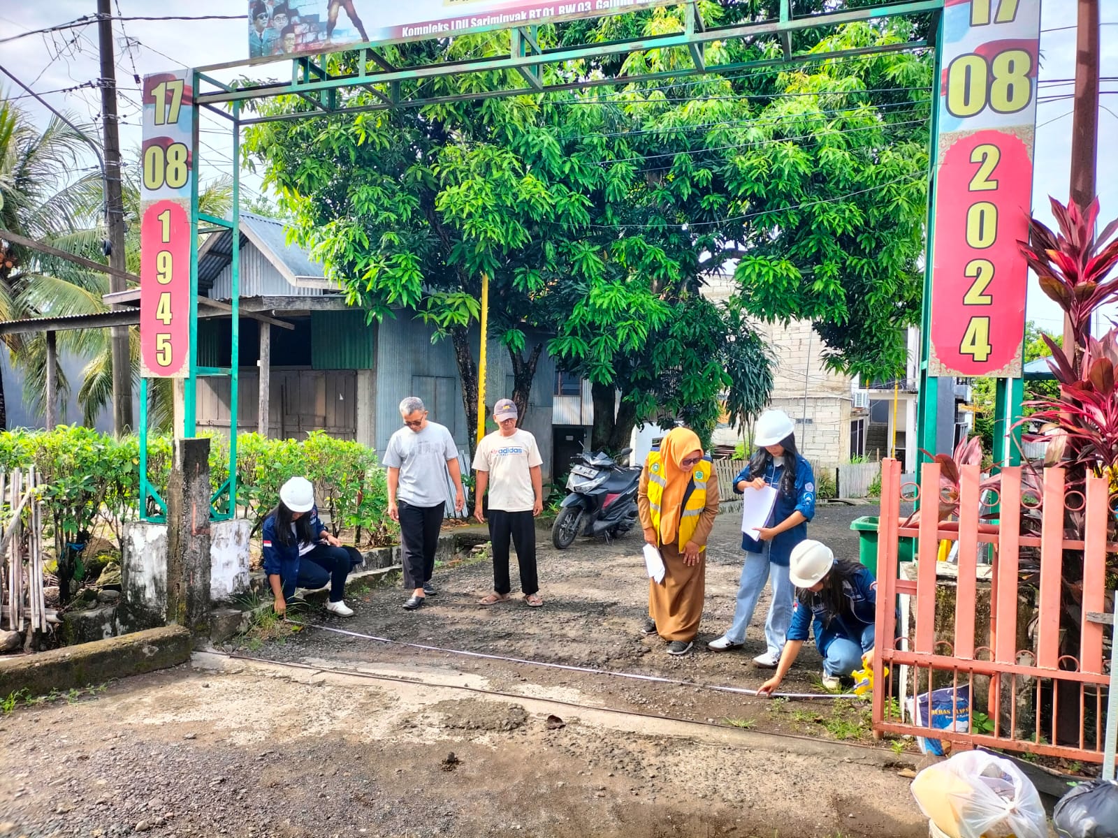 Hj Idayasni Staf Bidang Bina Marga dan didampingi peserta magang dari salah satu universitas di Manado yang ditugaskan oleh Kabid Bina Marga untuk melakukan survey update kondisi jalan pada ruas jalan kompleks LDII Sariminyak tersebut.