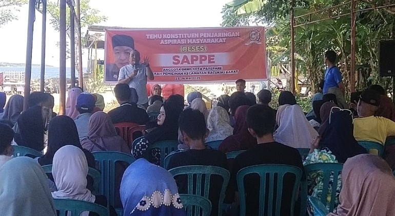 PAREPARE, KLUPAS.COM – Anggota DPRD Kota Parepare, Sappe, menggelar reses atau temu konstituen untuk menjaring aspirasi masyarakat, di Tonrangeng, Kelurahan Lumpue, Kecamatan Bacukiki Barat, Sabtu (24/5/2025).