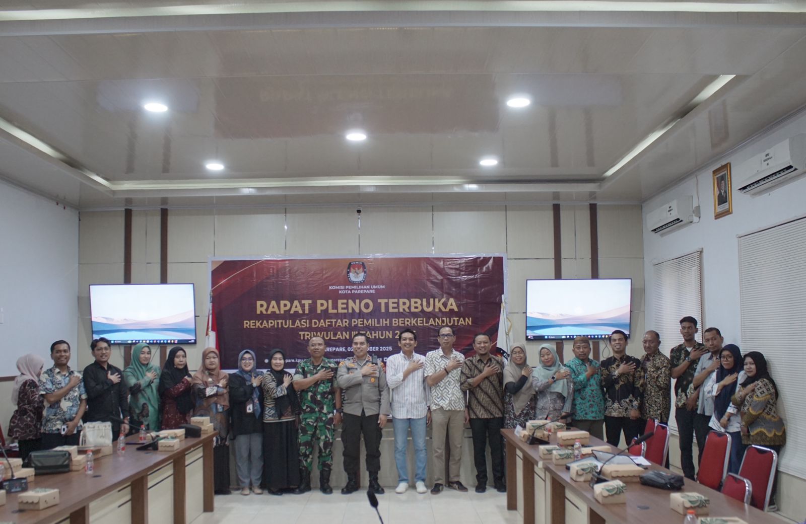 PAREPARE, KLUPAS.COM – Komisi Pemilihan Umum (KPU) Kota Parepare menggelar Rapat Pleno Terbuka Rekapitulasi Daftar Pemilih Berkelanjutan Triwulan III Tahun 2025, Kamis (2/10/2025), bertempat di Aula KPU Parepare.