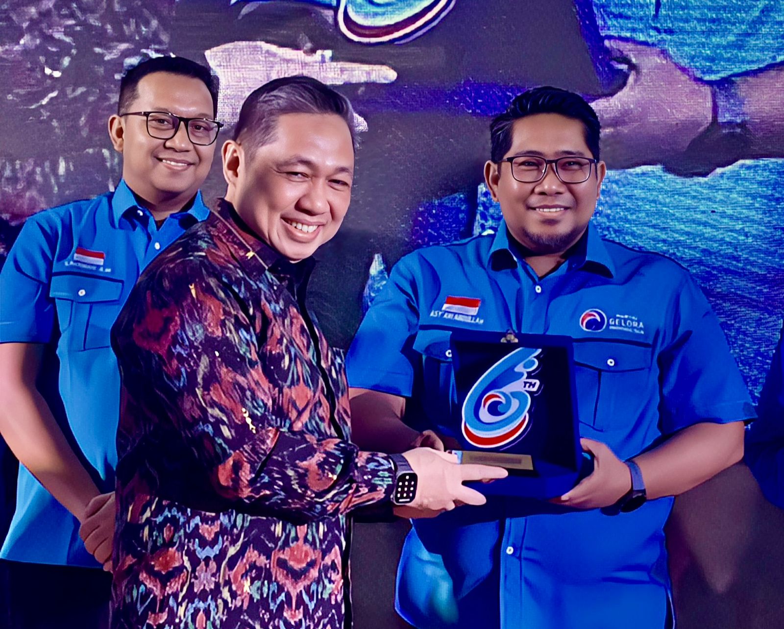 PAREPARE, KLUPAS.COM – Ketua DPD Partai Gelora Parepare, Asy’ari Abdullah, bersama Ketua Bappilu Partai Gelora Parepare, S. Parman Agus Mante, menerima penghargaan khusus pada puncak perayaan HUT ke-6 Partai Gelora Indonesia. Acara berlangsung meriah di Ballroom Hotel Horison Ultima, Minggu (16/11/2025).