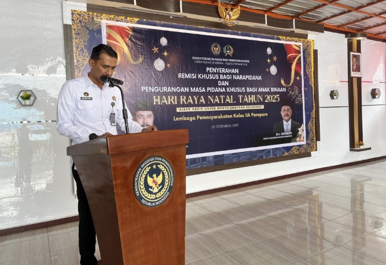 PAREPARE, KLUPAS.COM – Lembaga Pemasyarakatan (Lapas) Kelas IIA Parepare memberikan remisi khusus Hari Raya Natal kepada 13 Warga Binaan Pemasyarakatan (WBP) yang beragama Kristen, Kamis (25/12/2025). Pemberian remisi ini merupakan bentuk penghargaan negara atas perilaku baik dan partisipasi aktif WBP dalam mengikuti program pembinaan selama menjalani masa pidana.