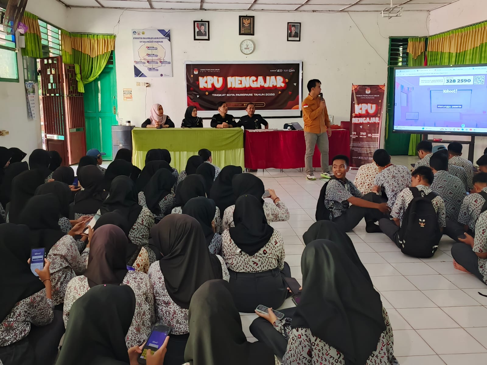 Acara ditutup oleh pemateri bersama peserta kegiatan dengan menggaungkan tagline ikonik program “KPU Mengajar”, yaitu “Jemput Pemilih dari Sekolah”.