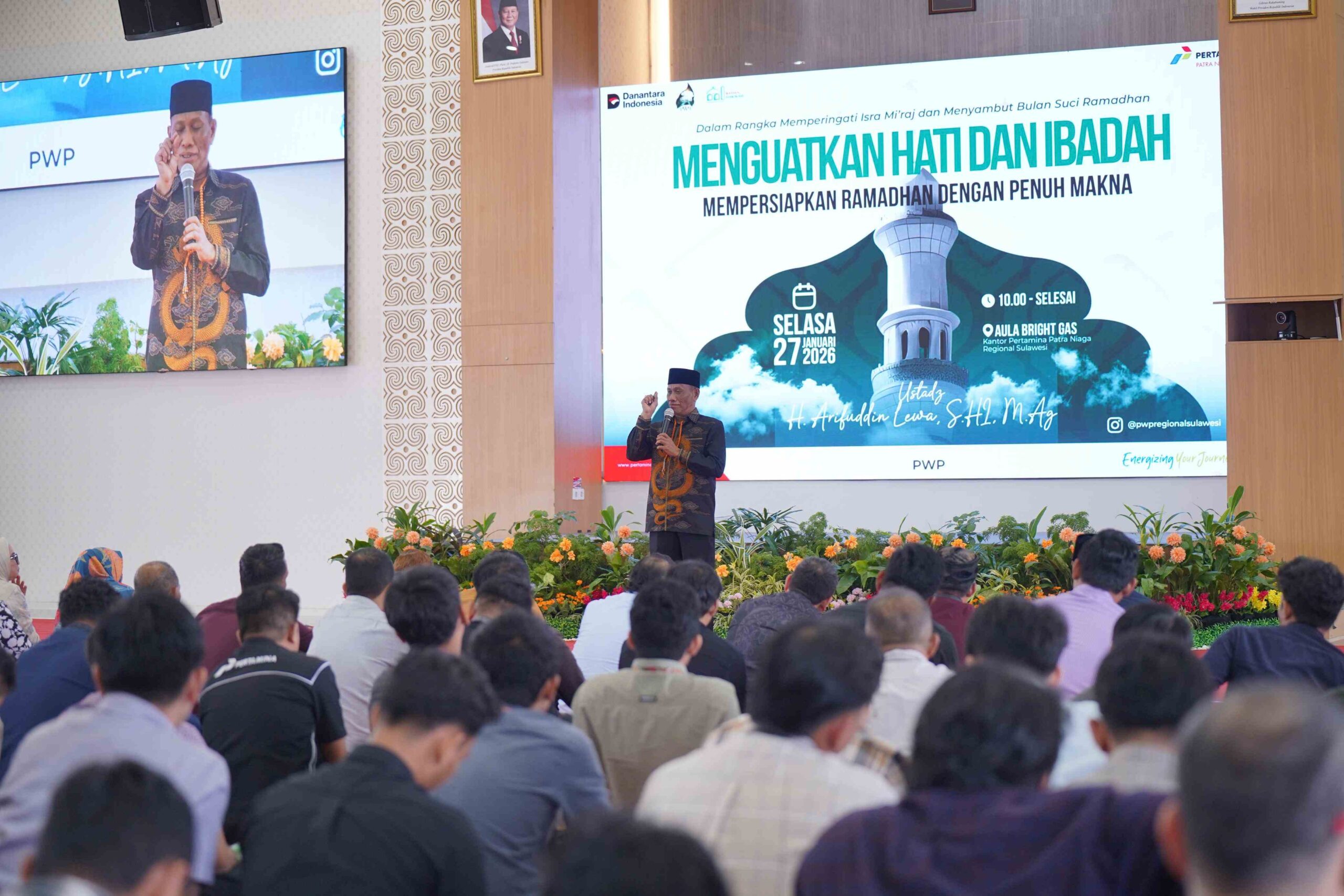MAKASSAR, KLUPAS.COM – Dalam rangka memperingati Isra’ Mi’raj Nabi Muhammad SAW sekaligus menyambut datangnya bulan suci Ramadhan 1447 Hijriyah, Pertamina Patra Niaga Regional Sulawesi menggelar kegiatan bertema “Menguatkan Hati dan Ibadah, Mempersiapkan Ramadhan dengan Penuh Makna”. Kegiatan ini berlangsung di Aula Bright Gas, Kantor Pertamina Patra Niaga Regional Sulawesi.