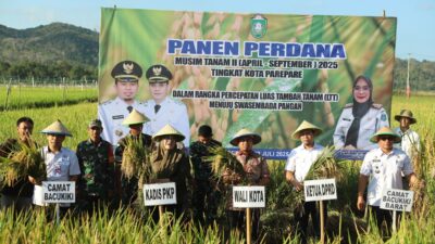 PAREPARE, KLUPAS.COM – Wali Kota Parepare, Tasming Hamid, memimpin langsung panen perdana penangkaran benih padi…